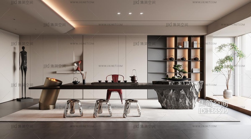 中古侘寂茶室_侘寂中古风茶室_中古风茶室_茶桌组合_现代中古风茶室_茶室SU模型su草图模型下载