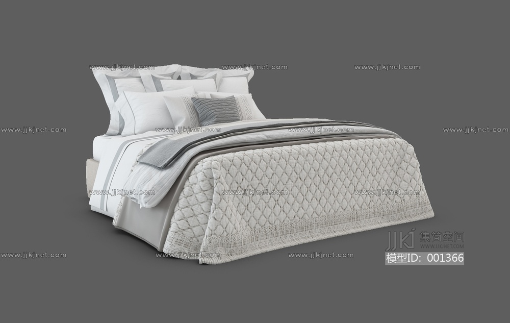13-现代轻奢双人床_布艺_皮质_轻奢双人床集合3D模型3d模型下载