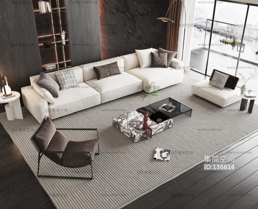 现代沙发茶几组合3D模型 3d模型下载 [模型ID:136614]