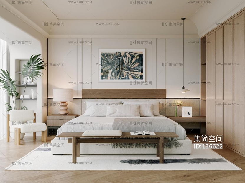 现代侘寂风卧室3D模型 3d模型下载 [模型ID:136622]