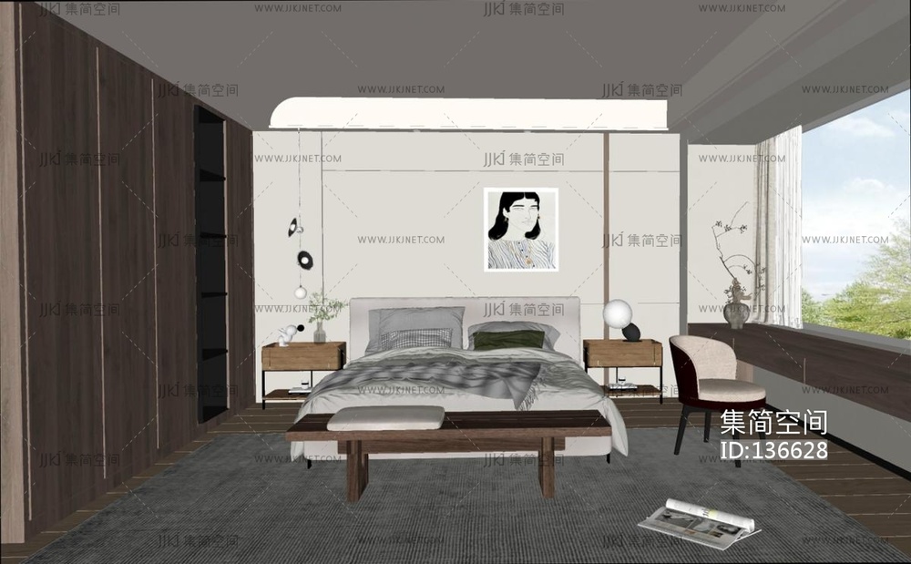 侘寂民宿卧室SU模型su草图模型下载