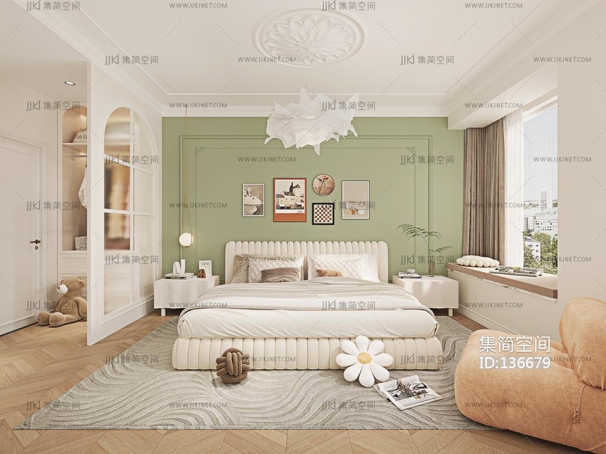 现代奶油风卧室 3d模型下载 [模型ID:136679]