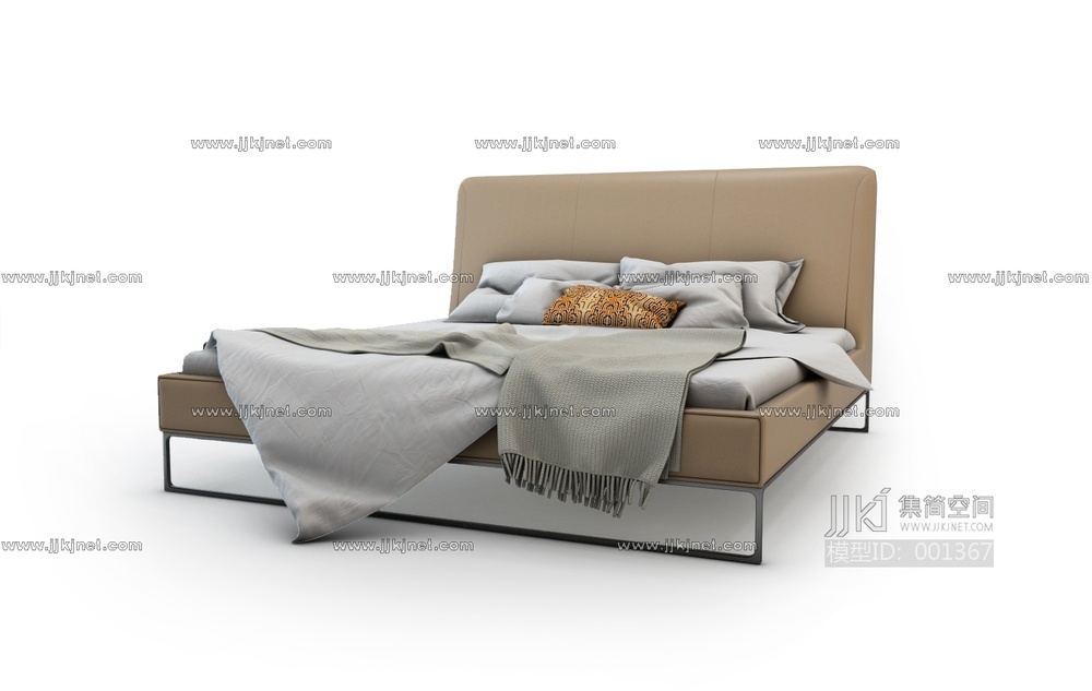 13-现代轻奢双人床_布艺_皮质_轻奢双人床集合3D模型3d模型下载