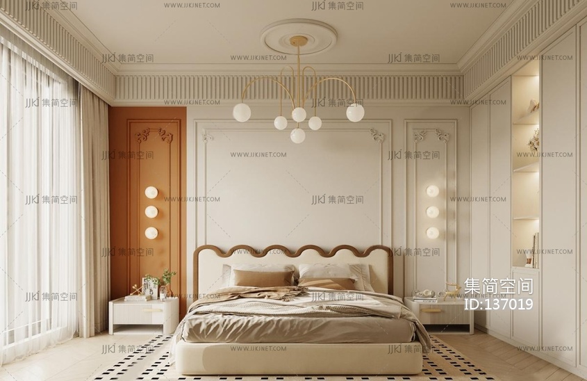 法式奶油风卧室 3d模型下载 [模型ID:137019]
