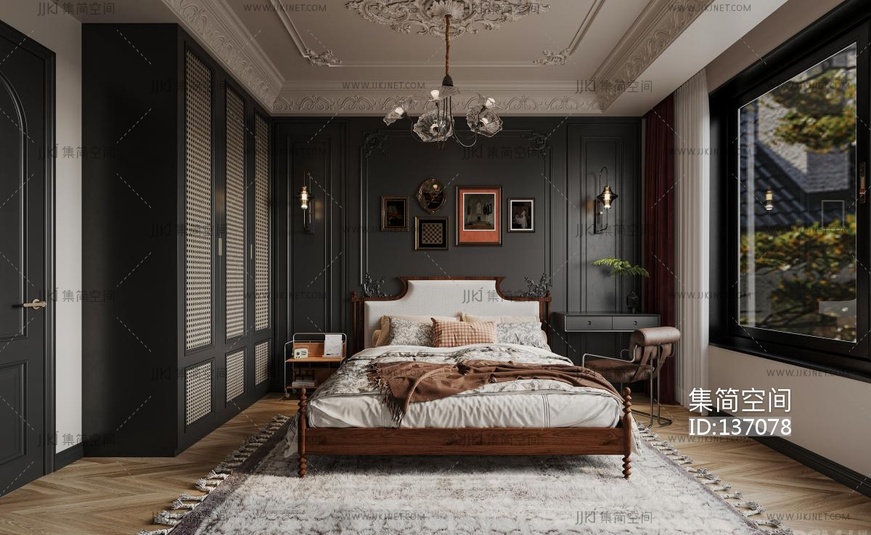 6法式中古家居卧室_主卧_飘窗卧室_高级灰卧室3D模型cr3d模型下载