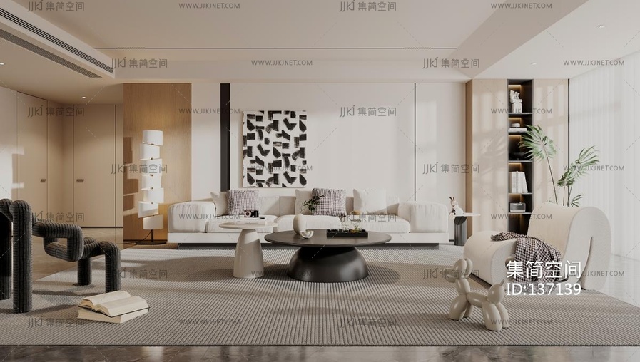 奶油风客厅 3d模型下载 [模型ID:137139]
