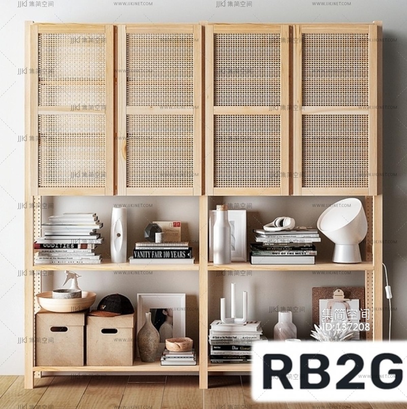 现代书柜装饰柜 3d模型下载 [模型ID:137208]