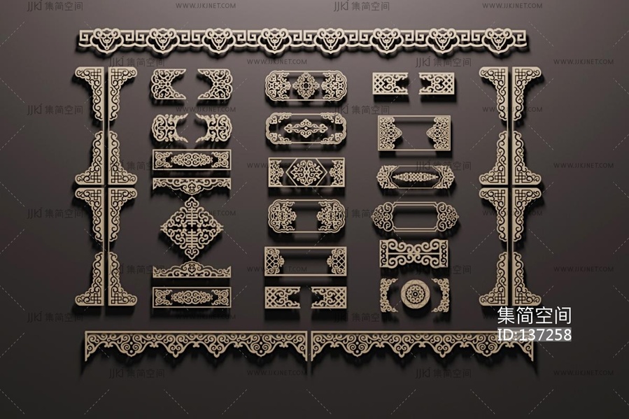 中式雕花构件,花格 3d模型下载 [模型ID:137258]