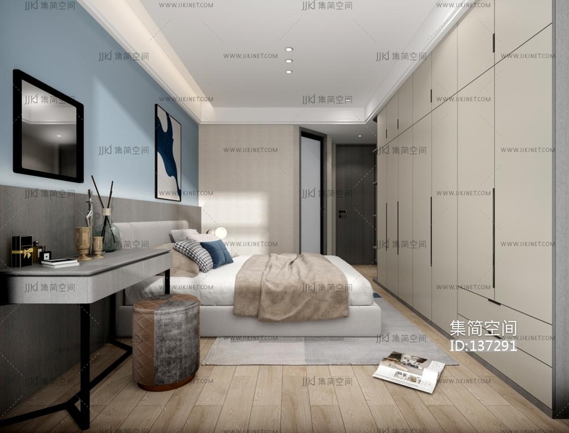 6法式中古家居卧室_主卧_飘窗卧室_高级灰卧室3D模型cr3d模型下载
