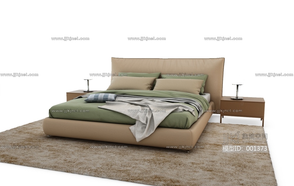 13-现代轻奢双人床_布艺_皮质_轻奢双人床集合3D模型3d模型下载