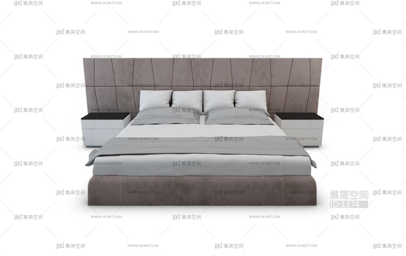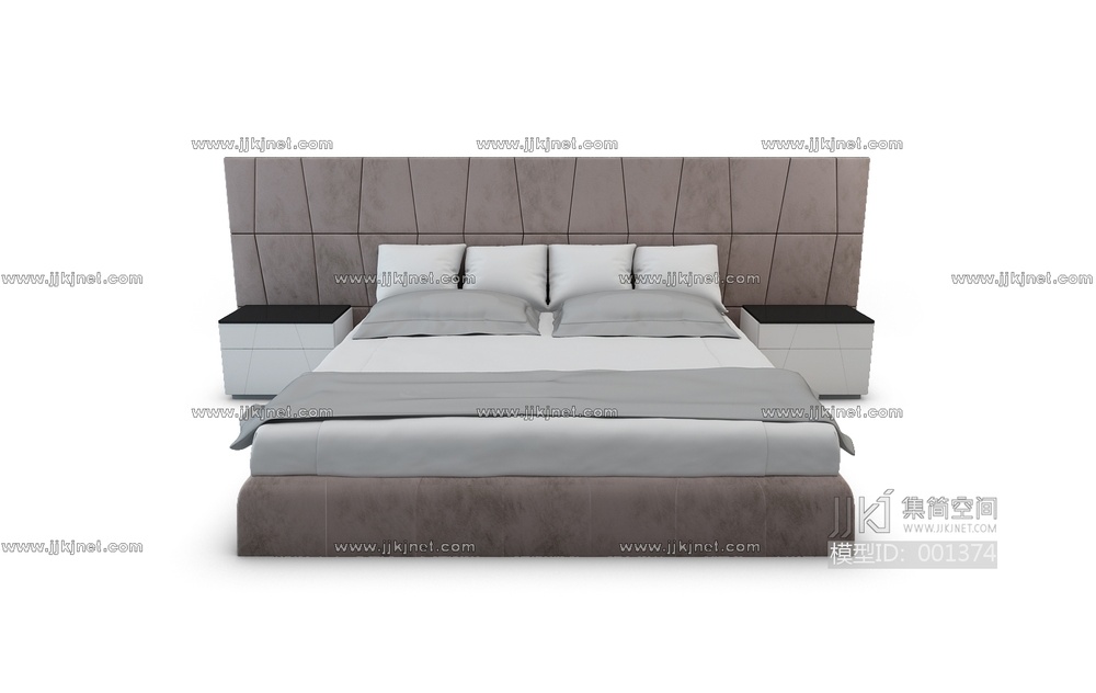 26-现代双人床_主卧床_布艺床3D模型93d模型下载