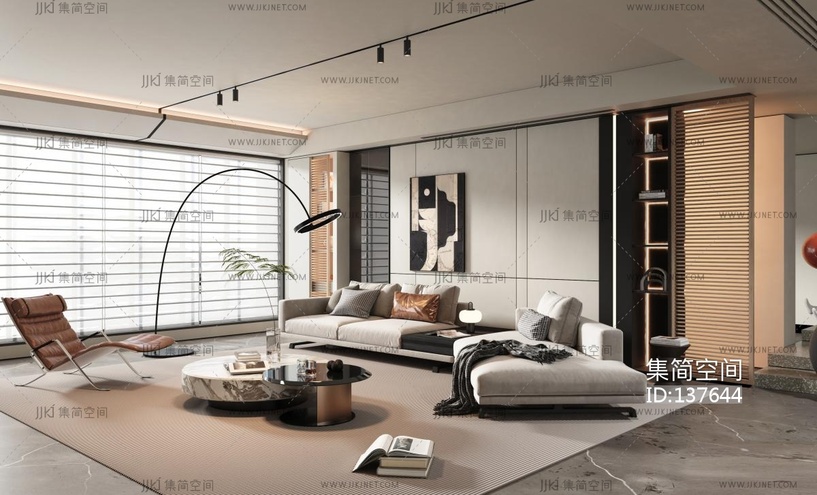 中古风客厅,美式客厅,圆形茶几,装饰画,移动电视,3d模型下载
