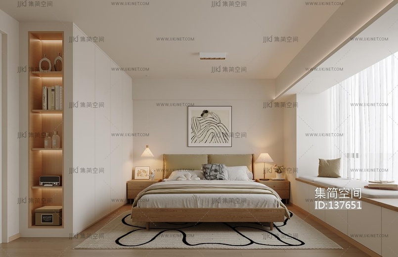 13-现代卧室,现代双人床包包皮包展示柜床头柜3d模型下载