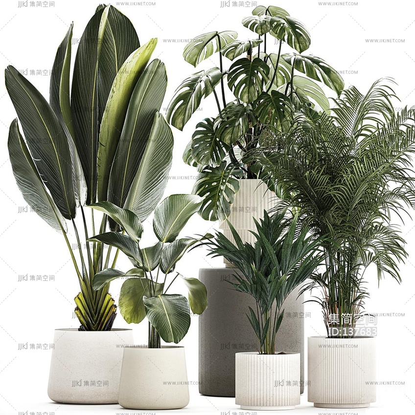 现代绿植盆栽,花盆散尾葵,芭蕉叶 3d模型下载 [模型ID:137683]