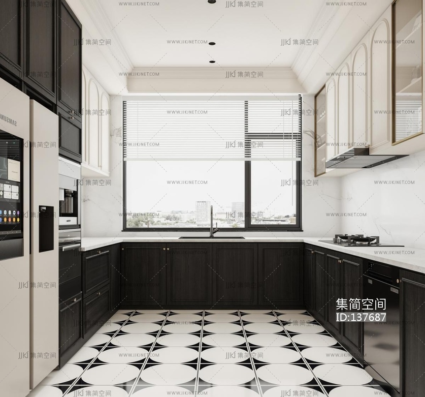 法式简约封闭式厨房 3d模型下载 [模型ID:137687]