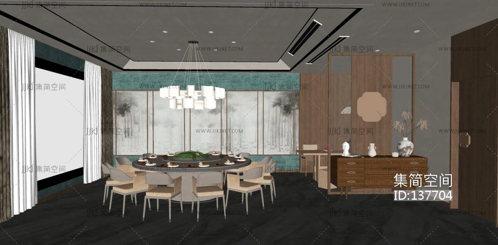 新中式餐饮包厢su模型 su草图模型下载 [模型ID:137704]