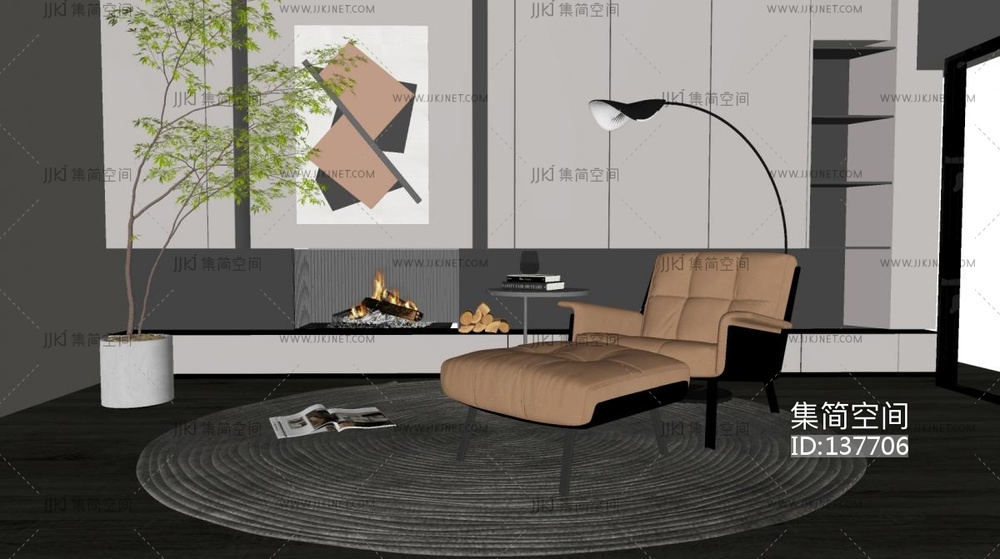现代休闲椅,脚凳su模型 su草图模型下载 [模型ID:137706]
