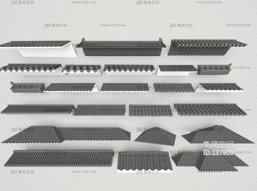 新中式屋檐 瓦片 屋顶,房檐坡屋顶3d模型 3d模型下载 [模型ID:137909]