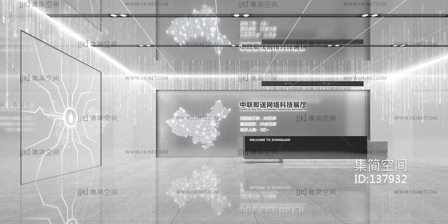 01-现代科技展厅,服务台前台,中国地图3D模 3d模型下载 [模型ID:137932]