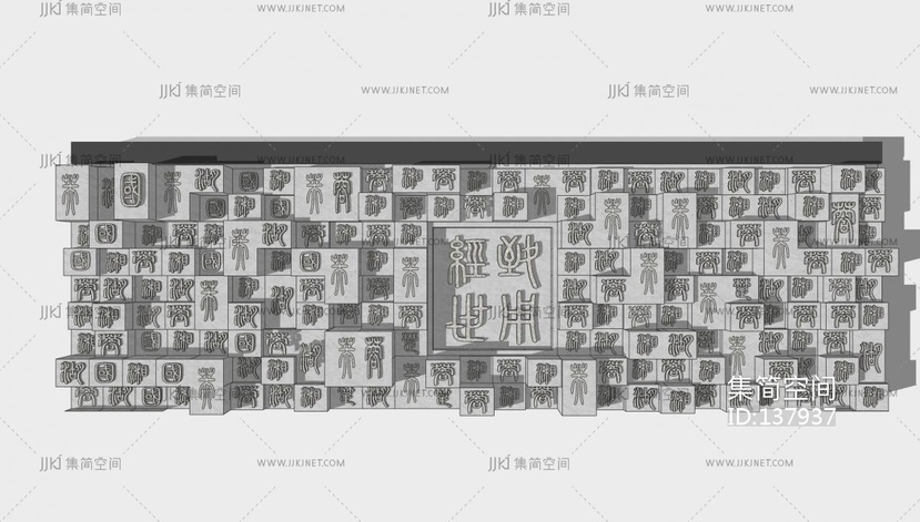 汉字文化景观墙景墙 su草图模型下载 [模型ID:137937]