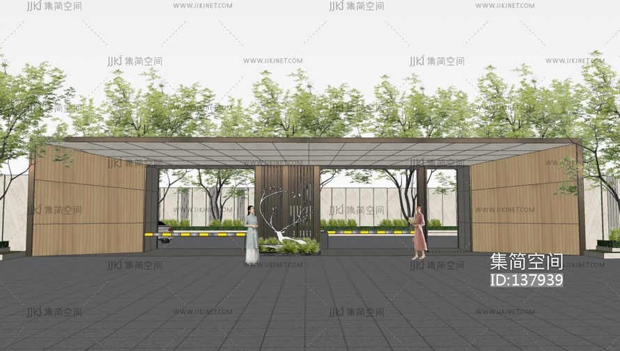 新亚洲大门入口小区大门入口SU模型 su草图模型下载 [模型ID:137939]