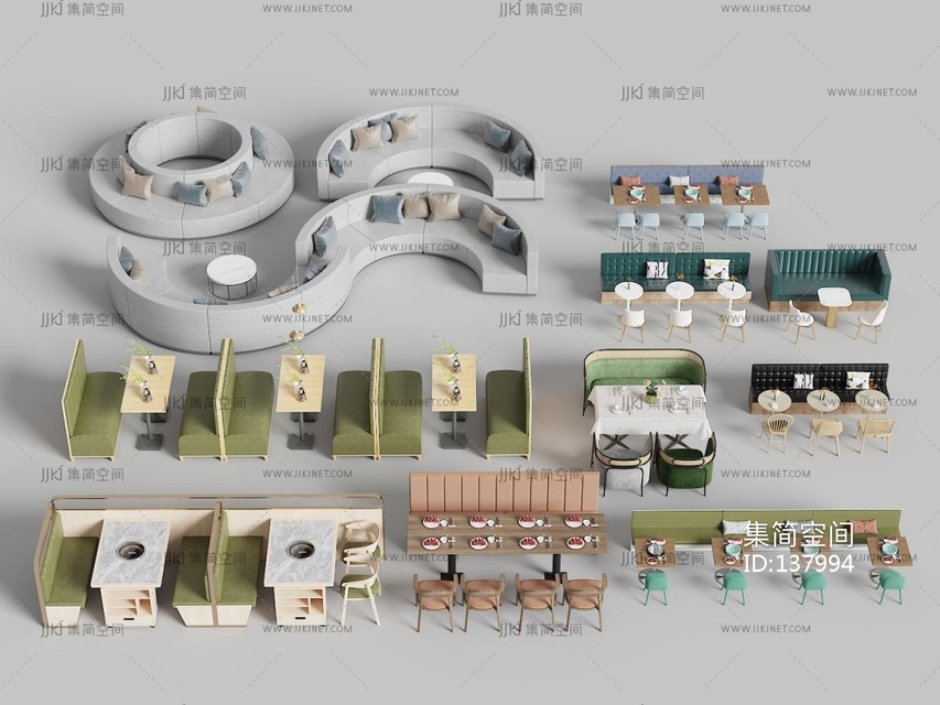 现代卡座沙发弧形卡座,3D模型3d模型下载