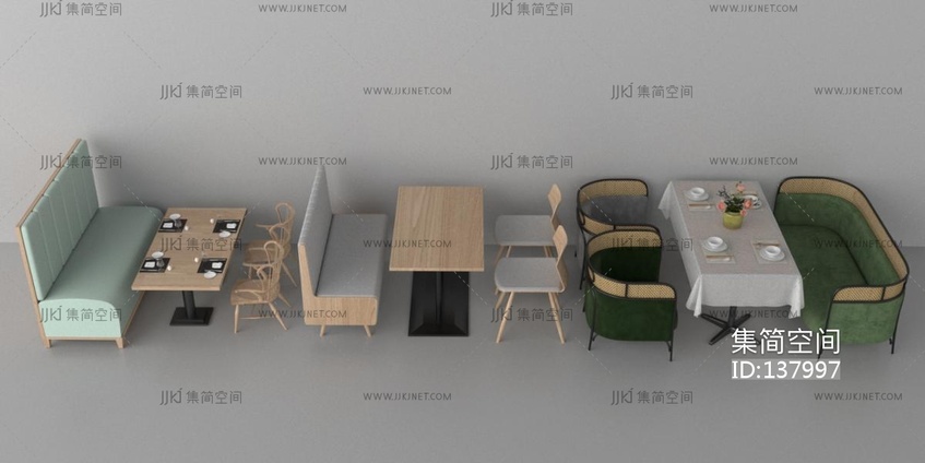 现代餐厅卡座沙发洽谈桌椅小圆桌3d模型下载