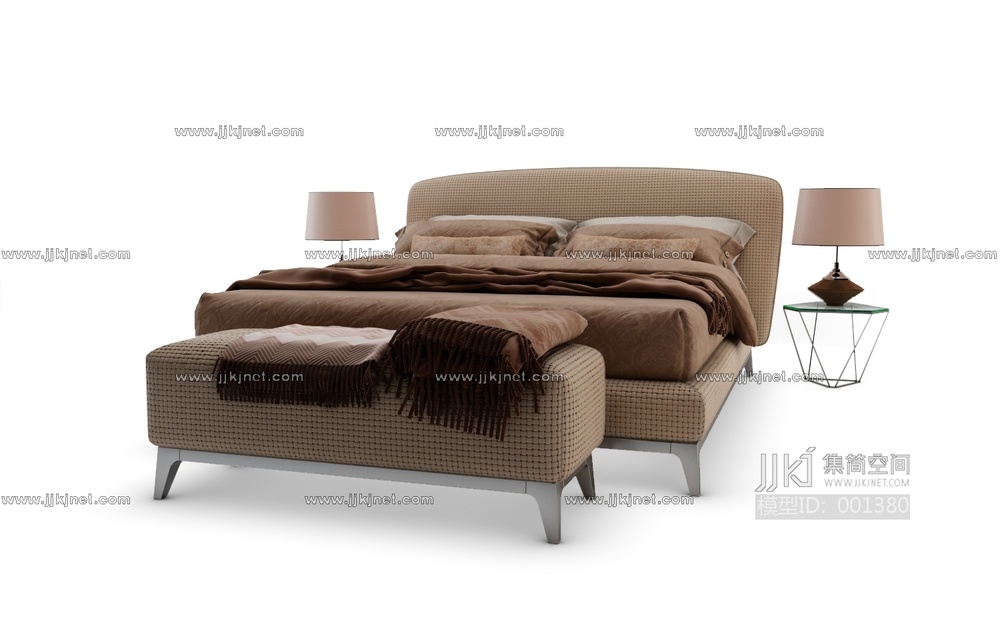 13-现代轻奢双人床_布艺_皮质_轻奢双人床集合3D模型3d模型下载