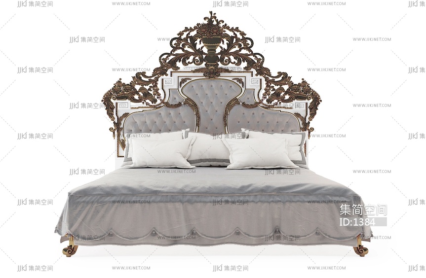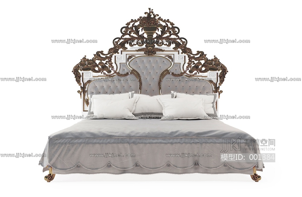 001欧式古典双人床 3d模型下载 [模型ID:1384]