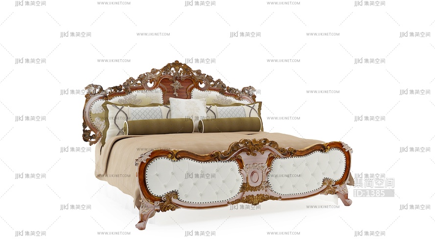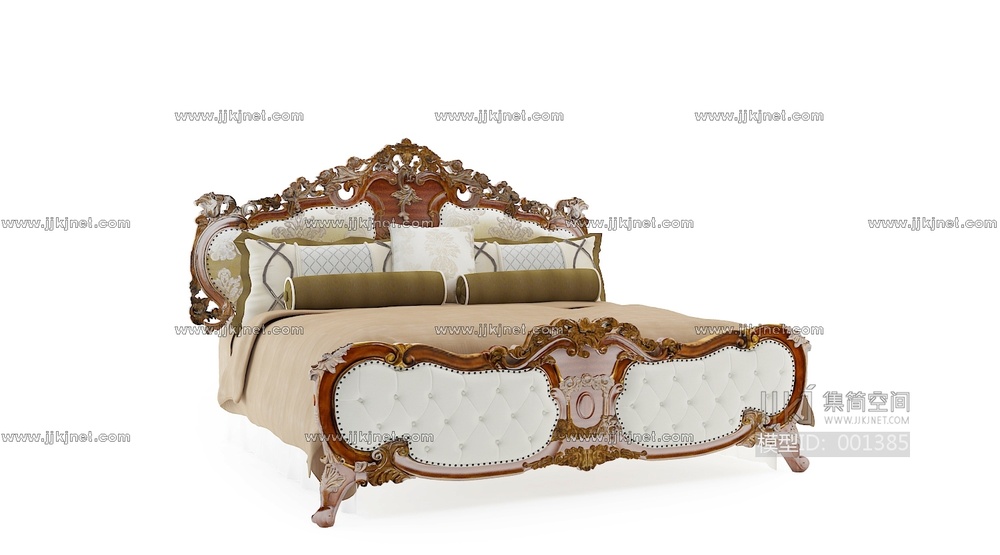 002欧式实木雕花双人床 3d模型下载 [模型ID:1385]