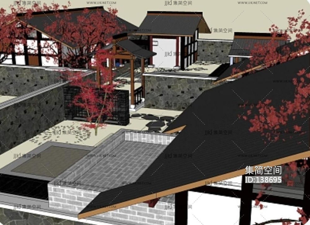 中式古建屋檐 屋顶 su模型su草图模型下载