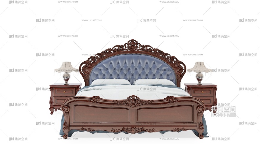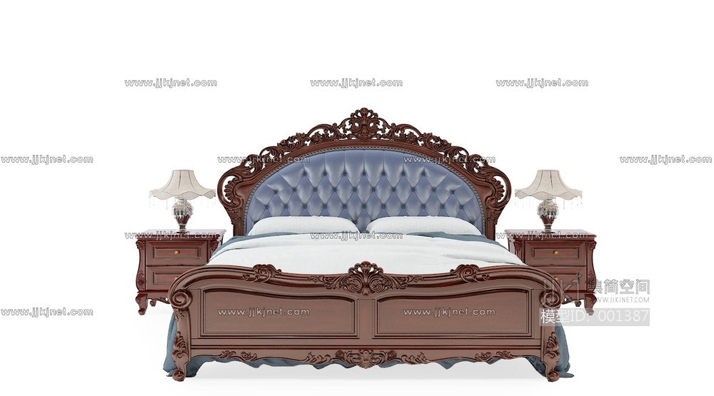 004欧式双人床 3d模型下载 [模型ID:1387]