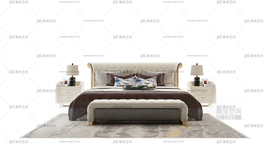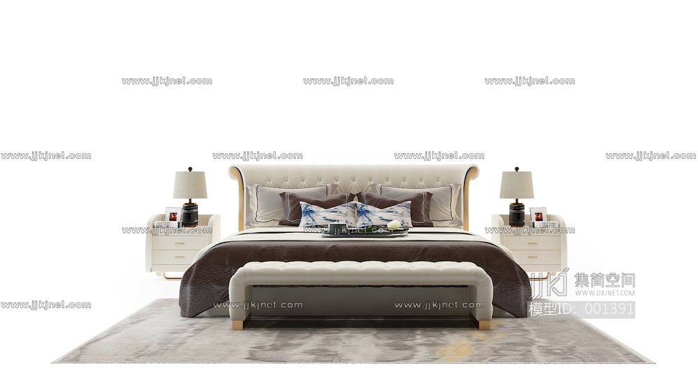 008欧式皮革双人床 3d模型下载 [模型ID:1391]