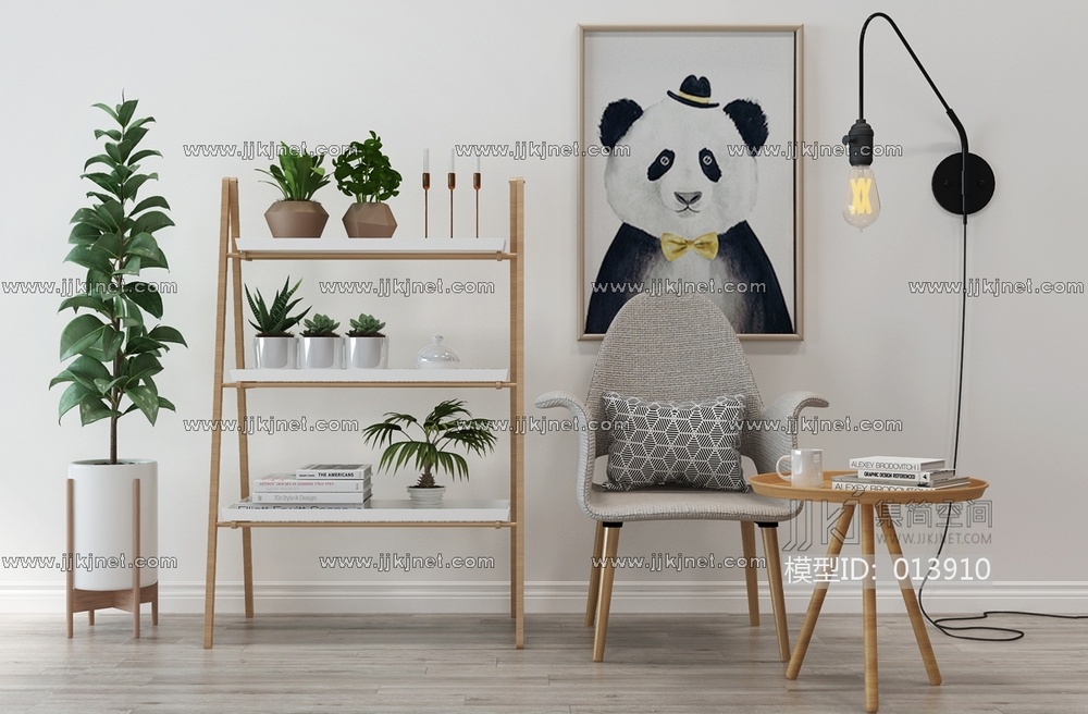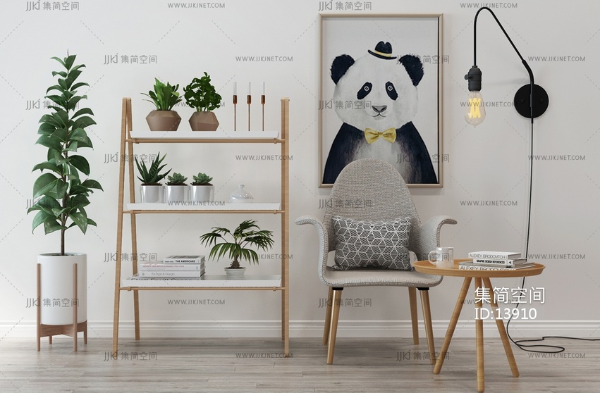 H22-1212北欧休闲椅圆几边几花架书架 3d模型下载 [模型ID:13910]