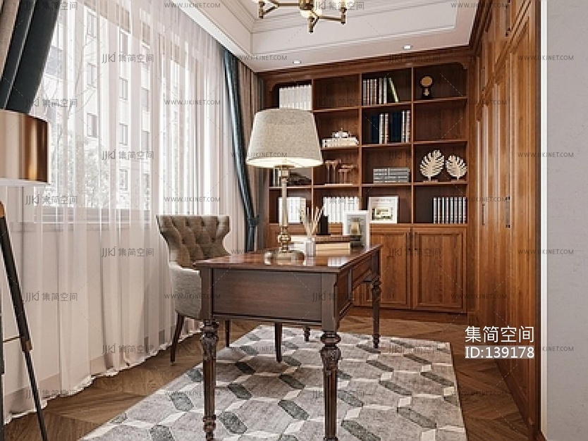 美式书房书桌椅 3d模型下载 [模型ID:139178]