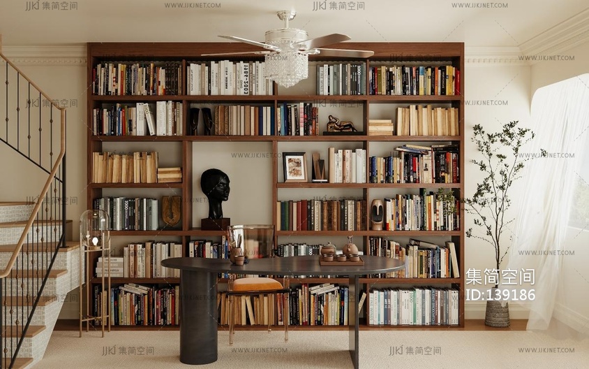 法式书房书柜 3d模型下载 [模型ID:139186]
