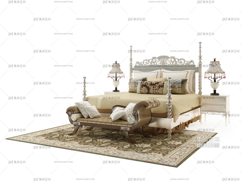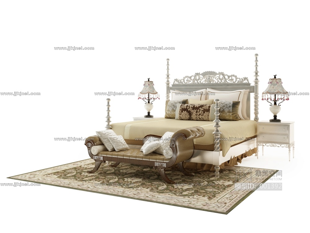 009欧式双人床 3d模型下载 [模型ID:1392]