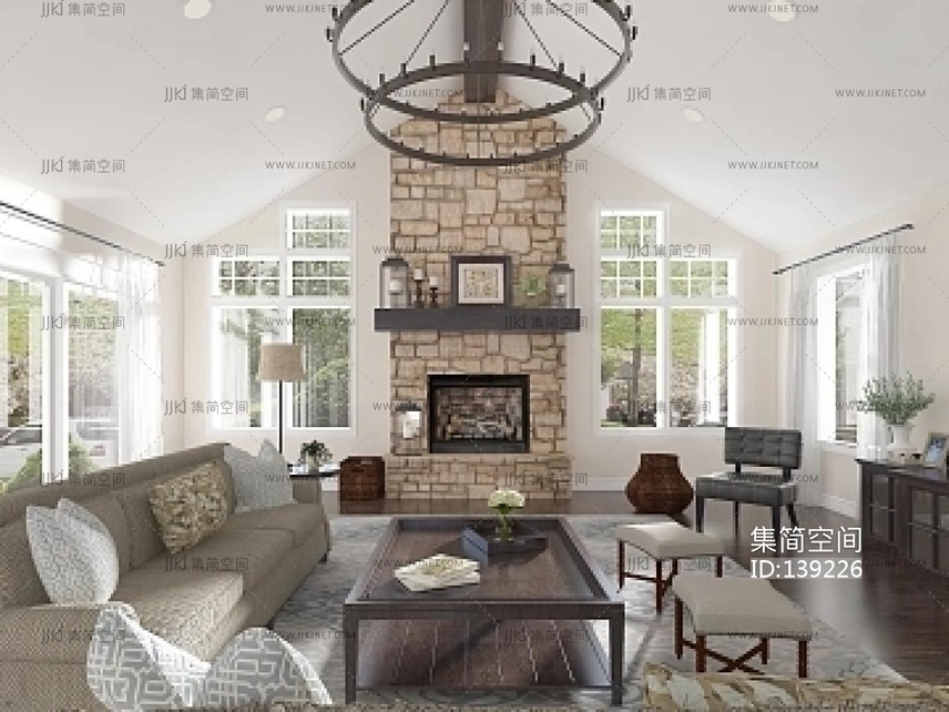 美式客厅3D模型 3d模型下载 [模型ID:139226]