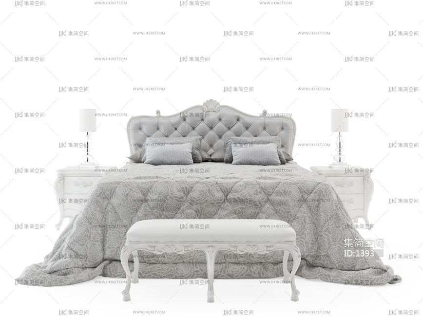 010欧式双人床 3d模型下载 [模型ID:1393]