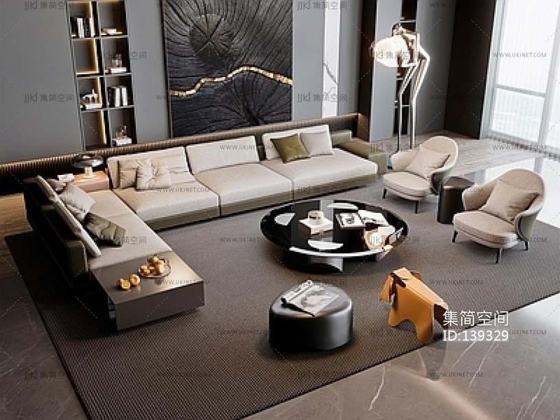 现代沙发茶几组合 3d模型下载 [模型ID:139329]
