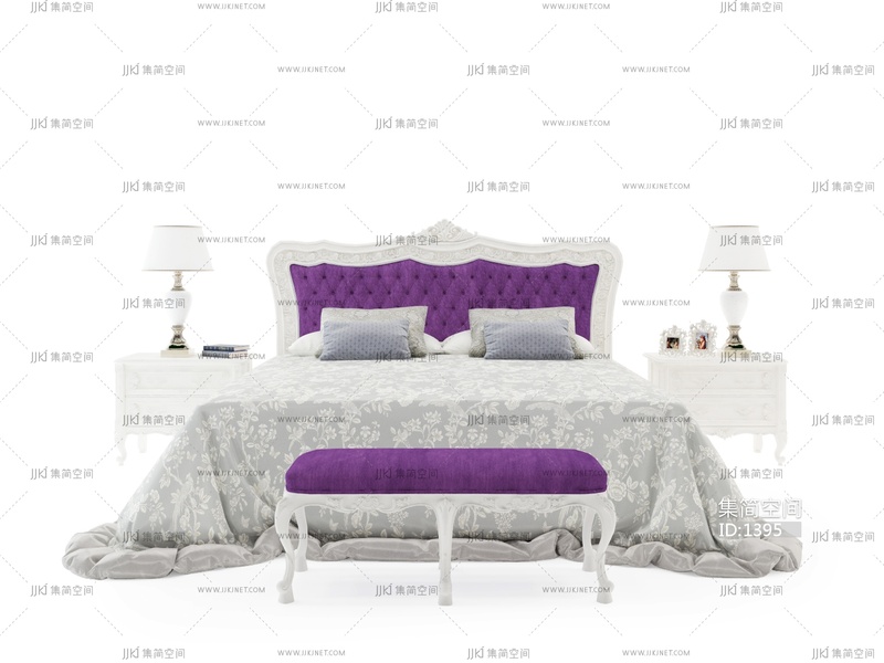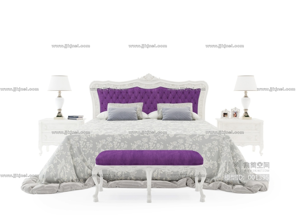 012欧式双人床 3d模型下载 [模型ID:1395]