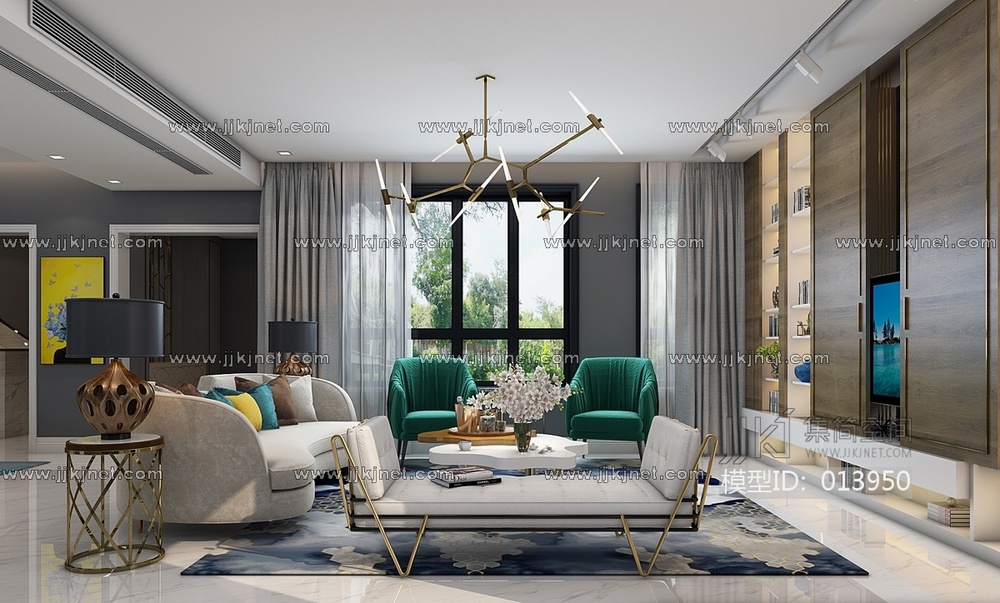 H10-1221现代客厅沙发茶几组合吊灯 3d模型下载 [模型ID:13950]