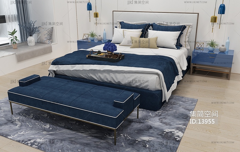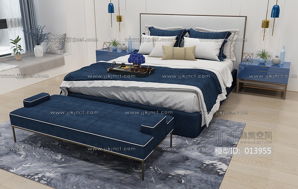 H16-1221新中式床床头柜床尾榻 3d模型下载 [模型ID:13955]