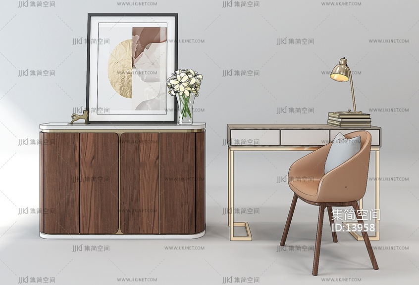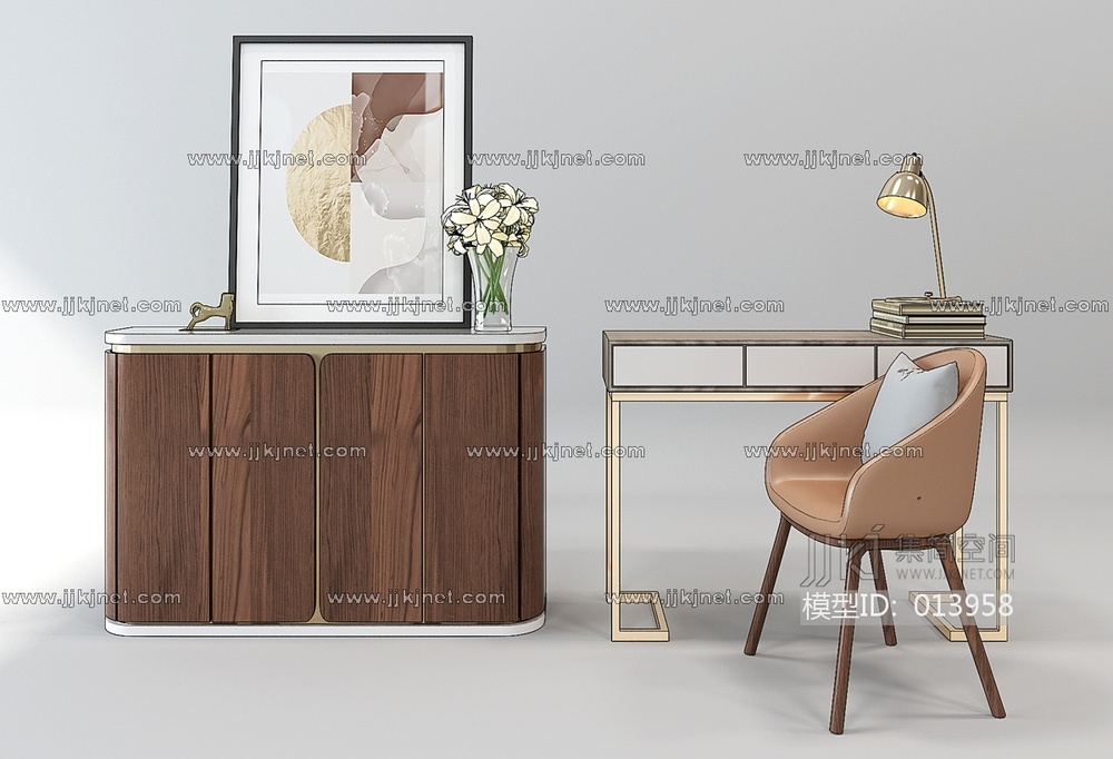 H19-1221现代电视柜写字台椅子组合 3d模型下载 [模型ID:13958]