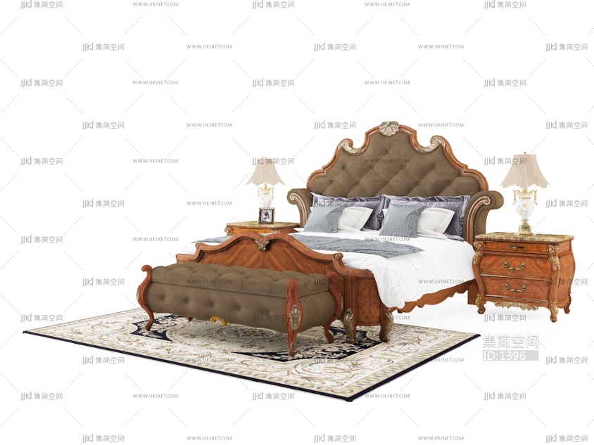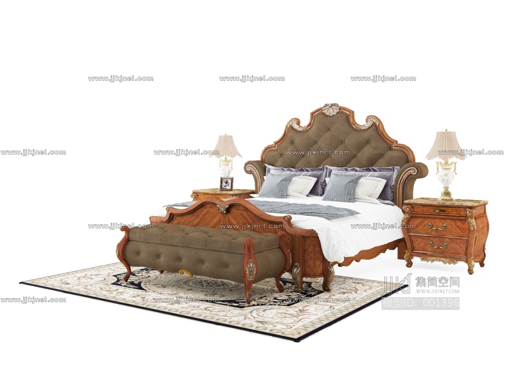 013欧式卧室双人床 3d模型下载 [模型ID:1396]