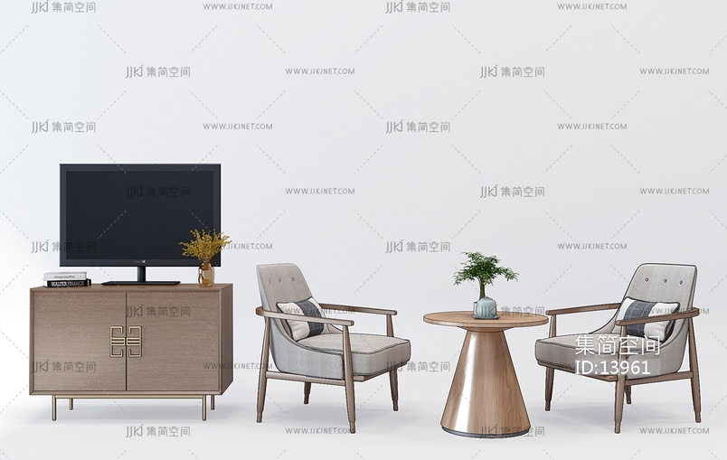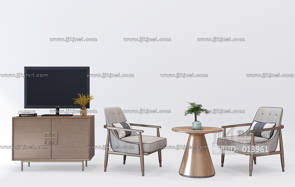 H22-1221新中式电视柜休闲椅子圆桌圆几 3d模型下载 [模型ID:13961]