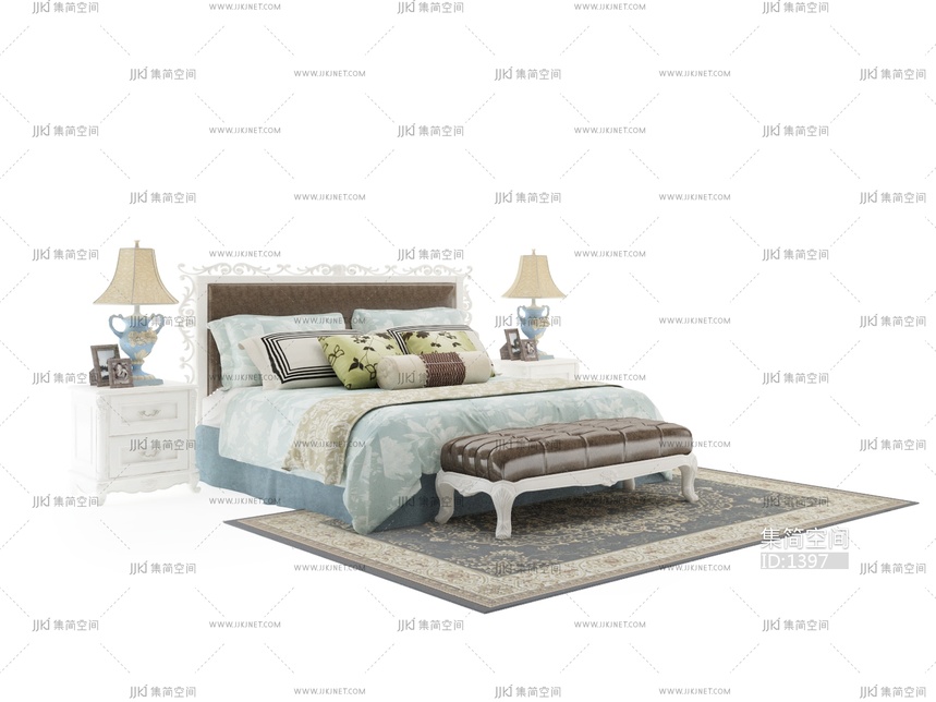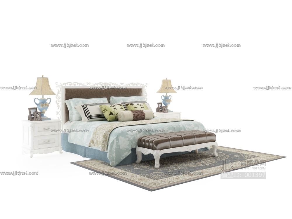 014欧式双人床 3d模型下载 [模型ID:1397]