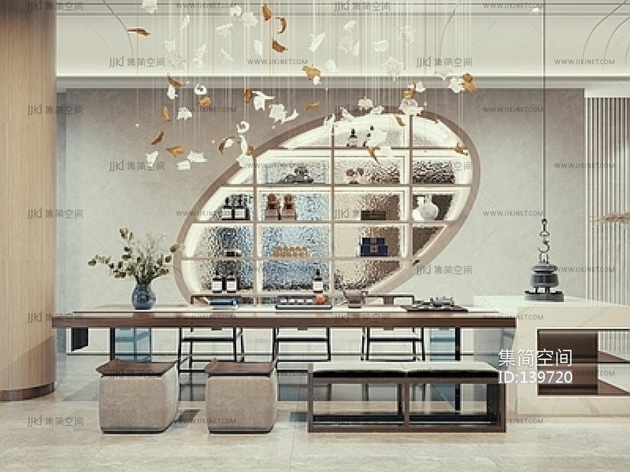 现代书房 书桌椅 壁柜 挂画 吊灯 书 盆栽 摆件3d模型下载