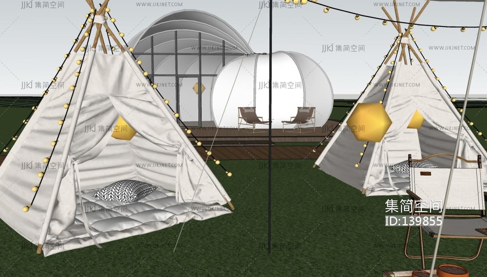 现代室外户外野营野炊帐篷 su草图模型下载 [模型ID:139855]