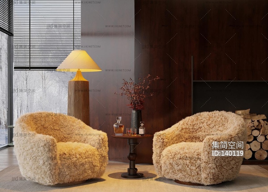 现代毛绒单人沙发圆形边几 3d模型下载 [模型ID:140119]